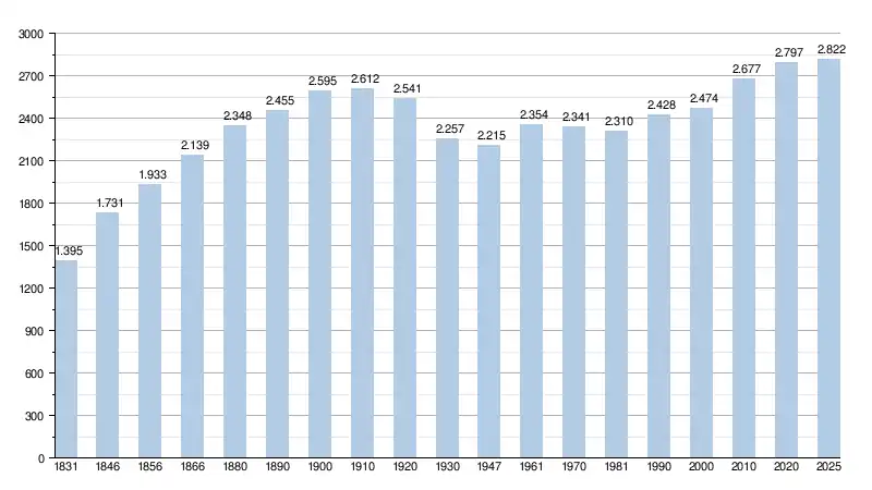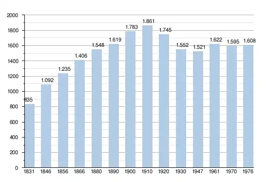Les chiffres des années 1831 à 1970 tiennent compte des chiffres des anciennes communes fusionnées.