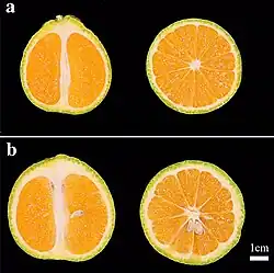 - 1 2 Chi Zhang, Dihu Yu, Fuzhi Ke et Mimi Zhu, « Seedless mutant ‘Wuzi Ougan’ (Citrus suavissima Hort. ex Tanaka ‘seedless’) and the wild type were compared by iTRAQ-based quantitative proteomics and integratedly analyzed with transcriptome to improve understanding of male sterility », BMC Genetics, vol. 19, no 1, , p. 106 (ISSN 1471-2156, PMID 30458706, PMCID PMC6245639, DOI 10.1186/s12863-018-0693-9, lire en ligne, consulté le )
