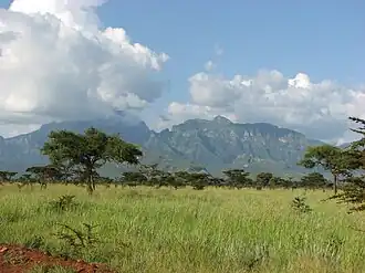 Le pays est situé sur le plateau Est-africain, pour la plus grande partie entre les 4e parallèle nord et 2e parallèle sud et entre les 29e et 35e méridiens est. Son altitude moyenne est de 1 100 mètres, en descente abrupte vers la plaine soudanaise au nord. Le centre s’articule autour du lac Kyoga, entouré de zones marécageuses.