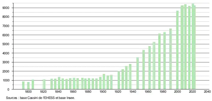 - ↑ Fiches Insee - Populations de référence de la commune pour les années 2006, 2007, 2008, 2009, 2010, 2011, 2012, 2013, 2014, 2015, 2016, 2017, 2018, 2019, 2020, 2021 et 2022.