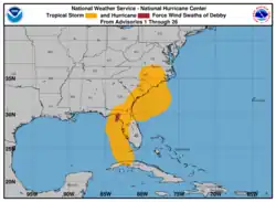 - ↑ (en) Pasch, « Tropical Storm Debby Intermediate Advisory Number 17A », National Hurricane Center, (consulté le ).