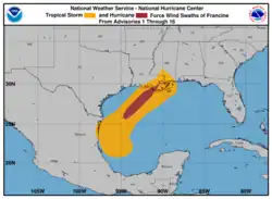 - ↑ (en) Cangialosi et Hagen, « Tropical Storm Francine Intermediate Advisory Number 9A », National Hurricane Center, (consulté le ).