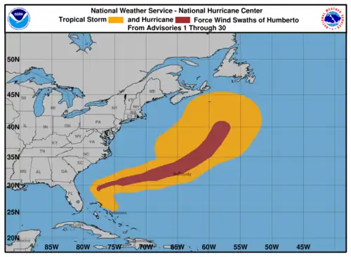 - ↑ (en) Pasch, « Hurricane Humberto Advisory Number 30 », National Hurricane Center, (consulté le ).