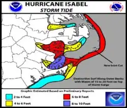 - 1 2 (en) National Oceanic and Atmospheric Administration, « Hurricane Isabel Service Assessment », (consulté le )