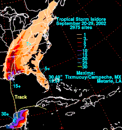 - 1 2 (en) David M. Roth, « Black Background, color-filled rainfall graphic for Isidore » (consulté le )