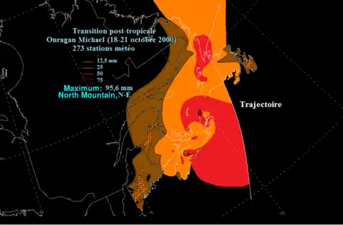 - ↑ Service météorologique du Canada, « L'ouragan Michael et la déprime de novembre », Les dix principaux événements météorologiques canadiens de 2000, Environnement Canada, (consulté le )