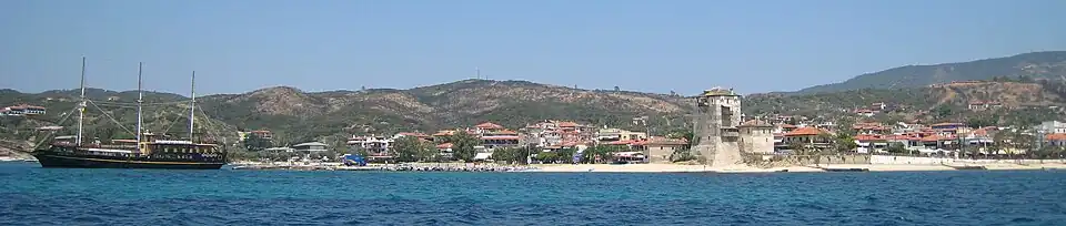 C'est aujourd'hui une cité balnéaire très prisée des touristes, mais aussi et surtout par les nombreux pèlerins (environ 30 000 par an dont 10 % d'étrangers) qui visitent la communauté monastique du mont Athos dont le port de Dafni se trouve à deux heures de navigation par navette maritime, seul moyen d'accès aux monastères athonites, partant chaque matin du port, près de la tour byzantine de Prosphori[5] (datant du XIIe siècle) et met environ deux heures pour atteindre Dáfni (le port de la « Sainte Montagne »), située à environ 25 km plus au sud.
