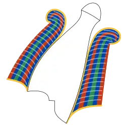 - d'une mitre blanche semblable à la couronne Hedjet, symbole de la Haute-Égypte