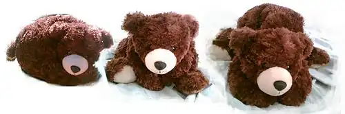 Après guerre, la morphologie de l'ours en peluche change : la bosse se fait plus discrète, les membres sont plus courts, les pieds plus fins. La rexine remplace le feutre ou le velours. Le corps se veut plus souple et il devient d'autant plus important de les garder propres et hygiéniques[17].