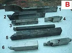 Cet outil permet d'usiner une rainure de grande largeur (B3-4), les petites largeurs sont utilisées pour le rainurage destiné à recevoir un joint, un circlips, etc. (B6-7).