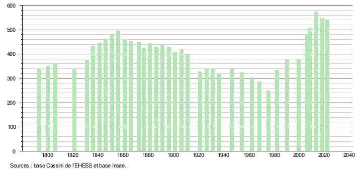 - ↑ Fiches Insee - Populations de référence de la commune pour les années 2006, 2007, 2008, 2009, 2010, 2011, 2012, 2013, 2014, 2015, 2016, 2017, 2018, 2019, 2020, 2021 et 2022.