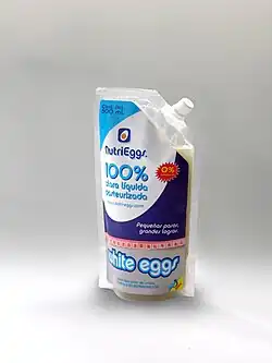 Blanc d'œufs liquide pasteurisé dans différents conditionnements. | ||