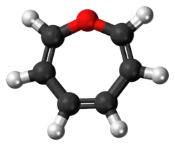 L'oxépine est un composé organique qui consiste en un cycle à 7 chaînons avec un atome d'oxygène et trois doubles liaisons. C'est un hétérocycle non aromatique et peut être considéré comme un éther énolique cyclique. L'oxépine est en équilibre tautomérique avec l'oxyde de benzène. Cet équilibre peut être basculé d'un extrême à l'autre selon les substituants ajoutés au cycle[3] :