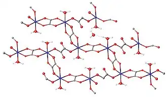 L’oxalate de fer(III), également connu sous le nom d’oxalate ferrique, fait référence à des composés inorganiques de formule générale Fe2(C2O4)3(H2O)x, mais peut également faire référence à des sels de [Fe(C2O4)3]3-. Les composés Fe2(C2O4)3(H2O)x sont des polymères de coordination (en) avec des degrés d’hydratation variables. Le complexe de coordination de formule [Fe(C2O4)3]3- forme une variété de sels, un exemple bien connu étant le ferrioxalate de potassium. Cet article met l’accent sur les polymères de coordination.
