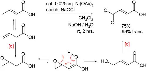De même, ce composé généré in situ catalyse la double oxydation de l'acide 3-butenoique en acide fumarique :