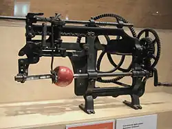 - ↑ (en) Moses Coates, Brevet U.S. X425 : Cutting apples & paring / apple parer, publié le 14 février 1803, sur Google Patents.