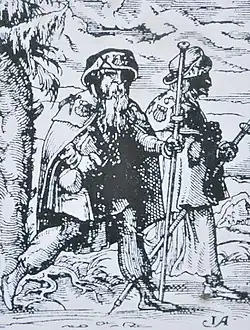 La besace et le bourdon (en ancien français bordon) constituent, dès le Haut Moyen Âge, les deux attributs caractéristiques du pèlerin, permettant de le reconnaître en tant que tel.