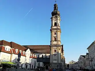 Dans les années qui ont suivi le pogrom de 1338 on a commencé à construire dans l'enceinte de Deggendorf une église qui, en 1361, a été placée sous le patronage alors répandu du « Corps du Christ » et des « Saints Apôtres Pierre et Paul »[2]. On n'a pu encore établir si l'église était située ou non sur l'emplacement d'une ancienne synagogue. À l'époque du massacre, Deggendorf appartenait déjà au diocèse de Ratisbonne tenu par l'évêque Nicolas d'Ybbs († 1340).