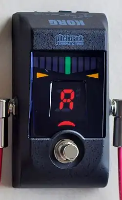 L'accordeur n'est pas un effet proprement dit, mais il a classiquement sa place dans un pedalboard. La pédale indique la note jouée par le musicien et lui permet d'accorder précisément son instrument. La plupart des accordeurs coupent le son lorsqu'ils sont en marche, permettant de s'accorder en silence.
