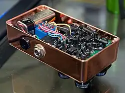 - d'un circuit électronique qui va appliquer un traitement au signal entrant pour obtenir l'effet désiré[2] ;