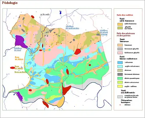 - ↑ Girard M.C. (1983), Recherche d’une modélisation en vue d’une représentation spatiale d’une couverture pédologique (Application à une région des plateaux jurassique de Bourgogne). ; Sols, 12, 430 p