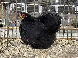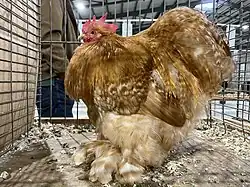 C'est une volaille de petite taille, large, aux contours arrondis (ce qui lui vaut le surnom de «boule de plumes»), basse sur pattes, qui sont masquées par des plumes, à la poitrine pleine et profonde, au plumage abondant et aux formes harmonieuses; elle est calme et docile. Il existe une variété à plumage frisé.