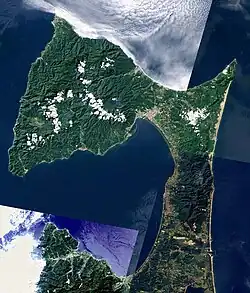 De la forme d'une hache penchant vers l'ouest, la péninsule a un « manche de hache » mince reliant la « lame de hache » montagneuse au continent. La population est dispersée sur les côtes tandis que l'intérieur est pratiquement inhabité.