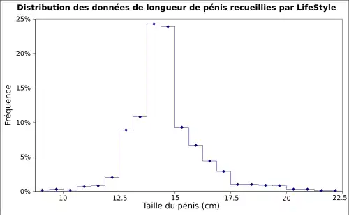 Selon l'Académie nationale française de chirurgie, la longueur moyenne de l'organe masculin au repos est de 9 à 9,5 cm et de 12,8 à 14,5 cm en érection[12].