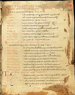 ~530 | Ms. sang. 150 (Stiftsbibliothek, Saint-Gall, IXe-Xe s.) Ms. lat. 12021 (BNF, Paris VIIIe s.) Ms. lat. 3182 (idem, Xe s.) Cod. lat. 2233 (ÖNB, Vienne, VIIIe-IXe s.) ![]() |