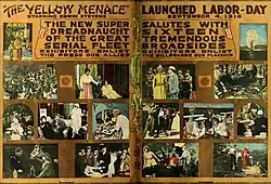 En 1908, Charles Foleÿ publie Kowa la mystérieuse chez Pierre Lafitte, rapidement traduit en anglais, l'histoire d'une cité secrète souterraine aux mains des Asiates qui y ont asservi des milliers d’Américains[13], et Émile Driant entame la publication d'une trilogie à succès, L'Invasion jaune, qui imagine un général japonais allié à la Chine, financé par des juifs américains, envahissant l'Europe continentale par la Russie, alors que le Royaume-Uni reste neutre. Magazine français très populaire, Je sais tout fait sa une le 15 janvier 1911 sur « La Race Jaune va-t-elle déborder ? ». En 1912, Charles Maurras fait écho à des craintes d’invasion asiatique exprimées par le poète Maurice Angelier[14]. Ce thème est repris implicitement dans la bande dessinée Le Secret de l'Espadon (1946-1948), où un « Empire jaune » conquiert le monde avant d'être défait par Blake et Mortimer et des Indiens musulmans[4].