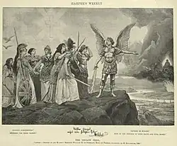 L’Occident, surtout les États-Unis (Californie) et l’Australie, connaissent alors les premières vagues d’immigration chinoise. Souvent couplée à la métaphore entomologique de la « fourmilière » asiatique, l’expression serait à l’origine allemande, gelbe Gefahr, attribuée à Guillaume II qui l’aurait forgée lors de la tentative du souverain allemand de fédérer les nations occidentales ayant des colonies en Asie contre le péril de la montée en puissance de la Chine et du Japon[8]. L'empereur fait réaliser par le peintre Hermann Knackfuss une gravure intitulée Nations européennes, défendez vos biens sacrés !, qui présente des troupes asiatiques déferlant sur l'Europe, devant l'archange Michel montrant la situation aux nations occidentales personnifiées. Il envoie cette image à d'autres dirigeants européens, comme le tsar Nicolas II. En , dans son discours au corps expéditionnaire allemand en partance pour la Chine dans le contexte de la révolte des Boxers (Chine), il compare les troupes allemandes aux Huns et déclare souhaiter que « le nom des Allemands acquière en Chine la même réputation, pour que jamais plus un Chinois n'ose regarder un Allemand de travers ». L'universitaire Jean-Louis Margolin note que, « si pour Guillaume II, la lutte est autant religieuse que raciale, c'est surtout ce dernier élément qui caractérise les discours du péril jaune »[4].