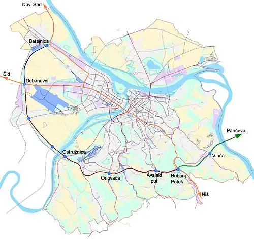 Route Régionale 474 : Belgrade-Centre Route Régionale 154 : Bubanj Potok, Leštane Autoroute A9 (en projet) : Pančevo, Vršac, Bucarest ( |