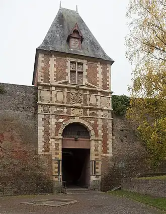 - ↑ Tasselbain, « Gravure : Péronne : La porte de Bretagne », Documents numérisés, fonds Macqueron, Bibliothèque municipale d'Abbeville, xixe siècle (consulté le ).
