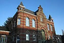 Tour du puits Saint-Albert. Construite dans le cadre de la modernisation de ce charbonnage, elle culmine à 52 m de hauteur et fut inaugurée en 1953[6]. Le puits cesse ses activités en 1969, comme à Anderlues, le siège sera utilisé par la société Distigaz qui transforme les vides souterrains en réservoir de stockage de gaz naturelle[7].