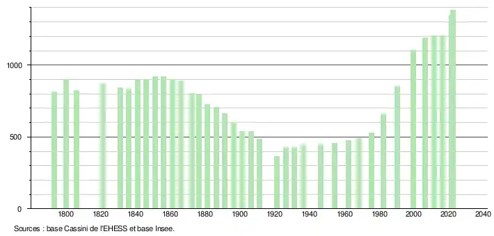 - ↑ Fiches Insee - Populations de référence de la commune pour les années 2006, 2007, 2008, 2009, 2010, 2011, 2012, 2013, 2014, 2015, 2016, 2017, 2018, 2019, 2020, 2021 et 2022.