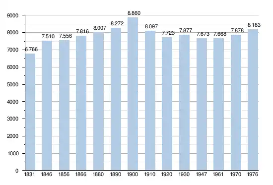Les chiffres des années 1831 à 1970 tiennent compte des chiffres des anciennes communes fusionnées.