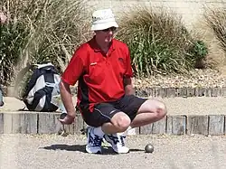 La pétanque (du provençal : pèd, « pieds », et tanca, « planté » ; (lou) jo à pèd-tanca, « le jeu à pieds-plantés », ou (la) petanco, « la pétanque ») est un jeu de boules dérivé du jeu provençal français. C'est le onzième sport en France par le nombre de licenciés : 298 151 joueurs recensés (fin 2016), et on compte près de 3 millions de joueurs amateurs réguliers en France[1] ; il existe de nombreuses fédérations nationales affiliées à la fédération internationale. Fin 2017, on compte près de 600 000 licenciés répartis dans cent pays, du Maroc au Viêtnam. À ces chiffres, il convient de rajouter les pratiquants occasionnels, en vacances notamment, c'est-à-dire plusieurs millions d'amateurs[2]. C'est un sport principalement masculin (moins de 15 % des licenciés sont des femmes en France). Néanmoins, c'est l'un des rares sports où des compétitions mixtes sont organisées.