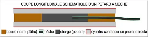 - Les pétards réguliers. Pétards à mèche dont la quantité de poudre à canon peut varier selon les explosifs.