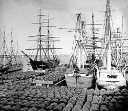 L'Elizabeth Watts, en novembre 1861 dans le port de Philadelphie, avant le chargement des 1 329 barils de pétrole.