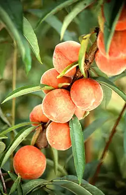 La pêche est un fruit comestible produit par le pêcher (Prunus persica) originaire de Chine.
