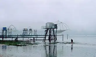 Les pêcheries sur pilotis sont des esplanades en bois, souvent agrémentées d'une cabane, permettant la pêche au carrelet. Elles sont accessibles par un ponton ou bien par une échelle. Une perche amarrée à un câble soutient deux cerceaux où se fixe le carrelet, filet qui nécessite un treuil pour être relevé. La plupart des pêcheurs appâtent en vers de terre le fond de leurs mailles, lesté par quelques plombs.