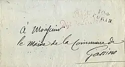 - ↑ Le Livre de poste ou Départ de Paris des courriers de la poste aux lettres sur Gallica, 1811, p. 89.