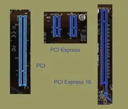 - Un périphérique x16 (16 lignes de communication) sera toujours capable de fonctionner en mode x1 (mais sera bridé par ce mode de fonctionnement) ; cet exemple est théorique, car dans la pratique il n'est pas envisageable d'insérer une carte x16 dans un connecteur x1, du fait de leurs longueurs différentes (sauf à « bidouiller » en retirant de la matière à l'extrémité du connecteur).