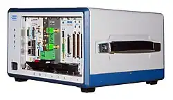 PCI eXtensions for instrumentation (PXI) est un système de bus basé sur le bus PCI et est une évolution des normes cPCI pour la mesure et de la technologie d'automatisation. Ceci élimine les câbles et les conversions de signal entre l'ordinateur et le moniteur sont nécessaires. Ainsi, un traitement particulièrement rapide sur la carte même ou à proximité est possible. PXI est le bus système le plus rapide dans l'industrie.
