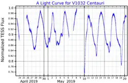 - ↑ (en) V* V1032 Cen -- T Tau-type Star sur la base de données Simbad du Centre de données astronomiques de Strasbourg.