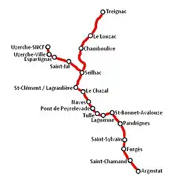 | Villes desservies | Tulle - Seilhac - Uzerche - Argentat - Treignac | ||||||||||||||||||||||||||||||||||||||||||||||||||||||||||||||||||||||||||||||||||||||||||||||||||||||||||||||||||||||||||||||||||||||||||||||||||||||||||||||||||||||||||||||||||||||||||||||||||||||||||||||||||||||||||||||||||||||||||||||||||