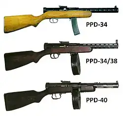 Il est lui-même remplacé en 1940 par le PPD 40 (85 000 armes) qui fut utilisé durant la Seconde Guerre mondiale par l'Armée rouge. La Wehrmacht employa également des PPD 34/38 et PPD40 capturés.