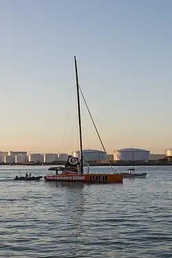 En , V. Riou prend la tête de la Route du Rhum 2018 pendant les premières heures de la course, montrant l'efficacité de ses nouveaux foils devant les favoris Charal de J. Beyou et Hugo Boss d'A. Thomson.
