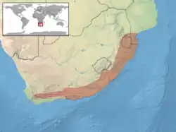 Cette espèce se rencontre en Afrique du Sud et en Eswatini[1].