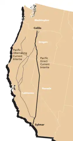 - (en) Cet article est partiellement ou en totalité issu de l’article de Wikipédia en anglais intitulé « Pacific DC Intertie » (voir la liste des auteurs).